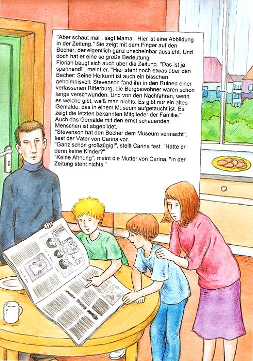 meint sie. "Hier steht noch etwas über den Becher: Seine